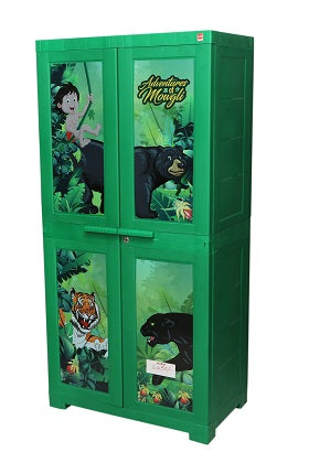 Cello’s plastic cabin for kids room with lock and 3 racks. Dimension 59.5 cm wide x 122.5 ht x 37 cm depth.