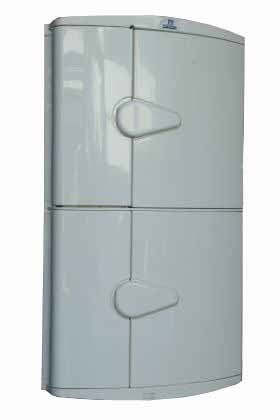 Nilkamal’s 2 door corner shelf with magnetic lock.