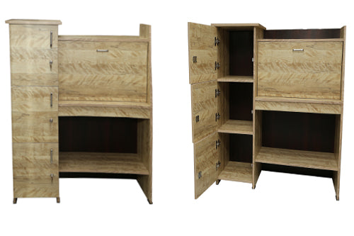 Laminated particle board / compressed wood with foot rest, magnetic catch, storage space and locks
